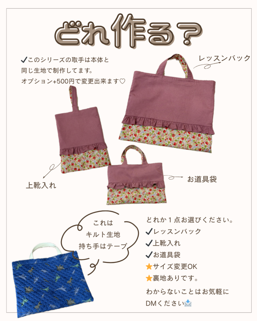 ⭐ 持ち手テープ当日選択(同じ生地で制作の場合+500円)