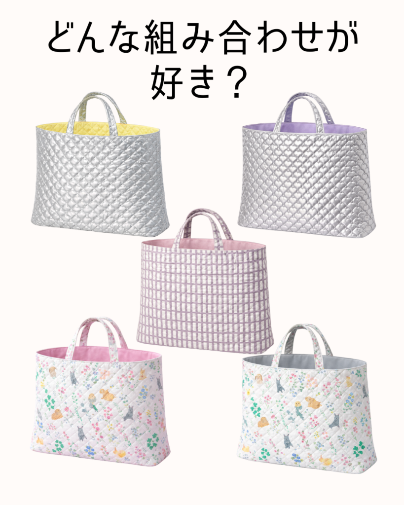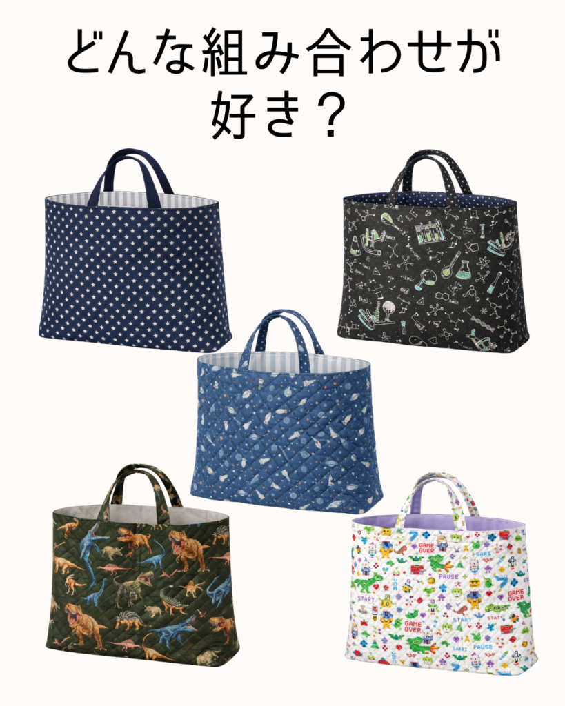 当日は裏地や持ち手の色合わせを楽しみながら制作できます。