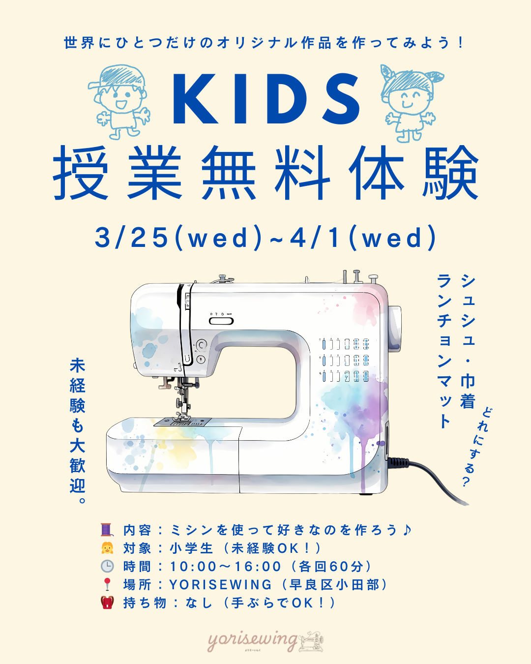 YORISEWINGでは小学生向けのミシン無料体験レッスンを開催します。 「ミシンってむ... -